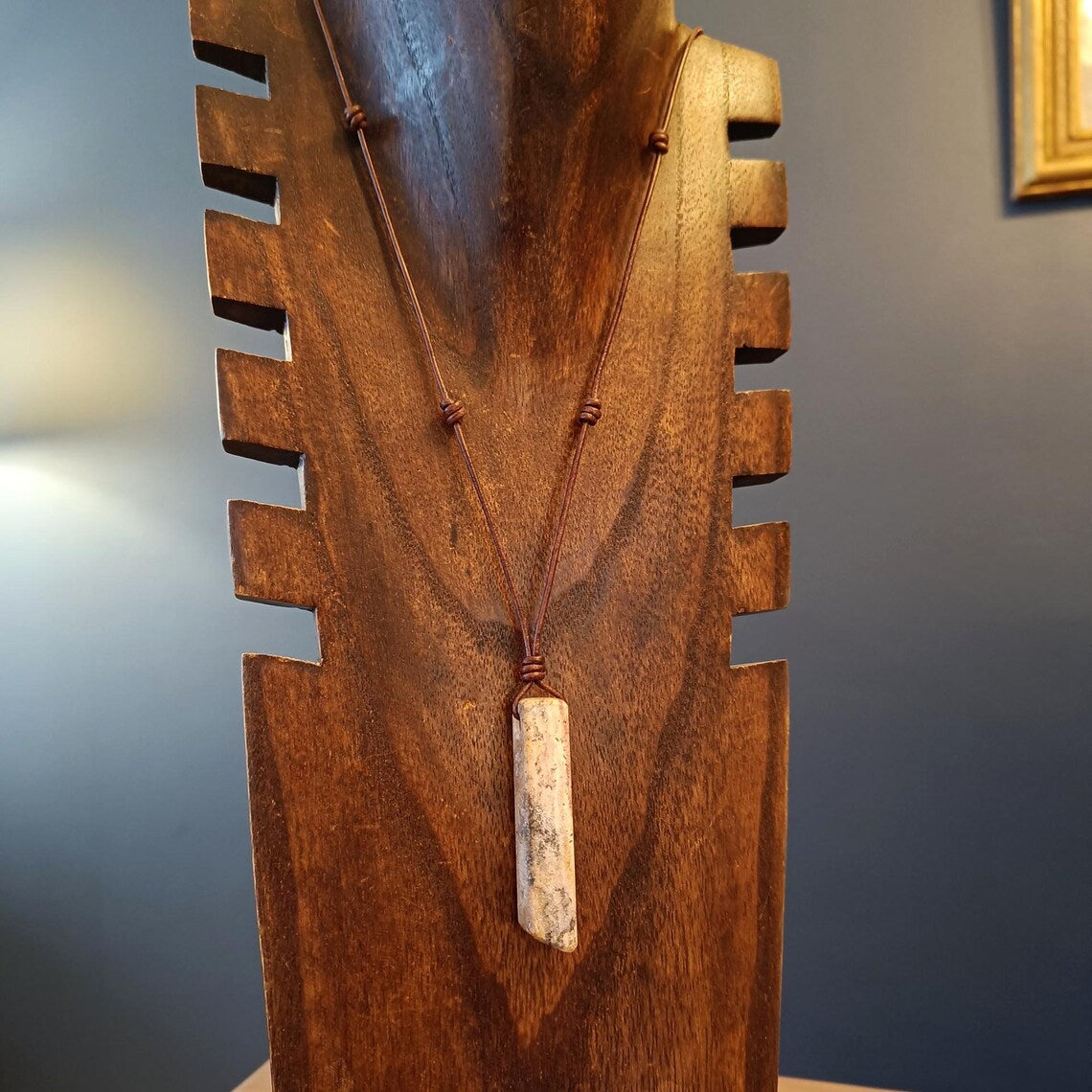 Long Rhyolite Volcanic Rock Pendant Necklace